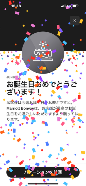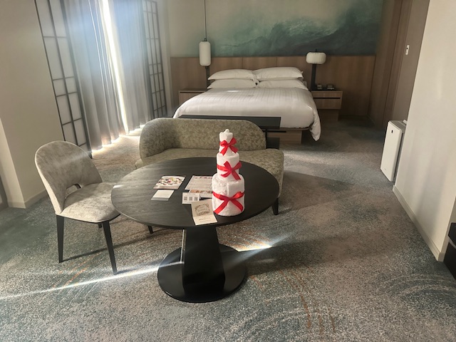 アンバサダーデスクから「誕生日です」と連絡が入っていたらしく、セミスイートの部屋だと通された。