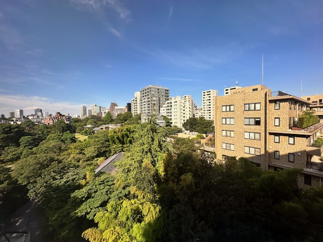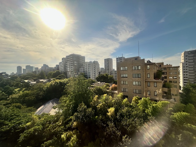 東京の中で緑がたくさんあるけど、太陽光線が強すぎる。