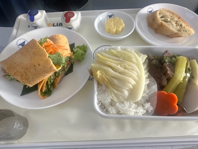 ビジネスクラスは国内線ファーストクラス以下の座席で広いエコノミーくらいのレベルだった。