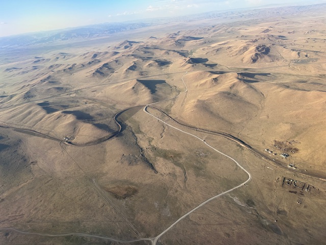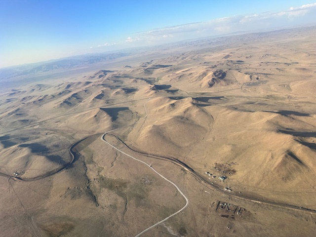 世の中には砂漠と土漠というのもあるそうで。この高度からでは判断ができない。