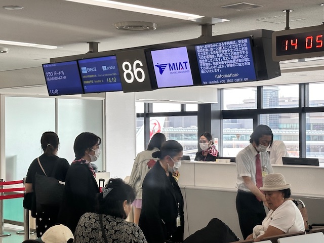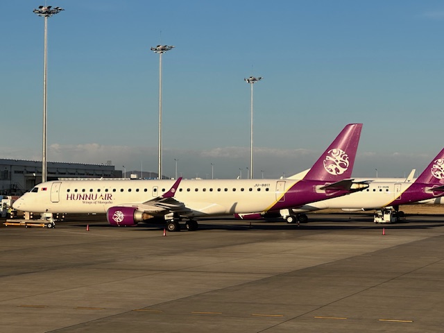 約5時間でモンゴルへ着く。5時間未満はエコノミークラスなんだけど、以前セブ島へ行った時に狭〜い座席で苦痛な思いをしたし、50歳もとっくに過ぎてしまったから4時間未満に変更〜。あ、やっぱり3時間以上はビジネスクラスに緩和しましょ〜