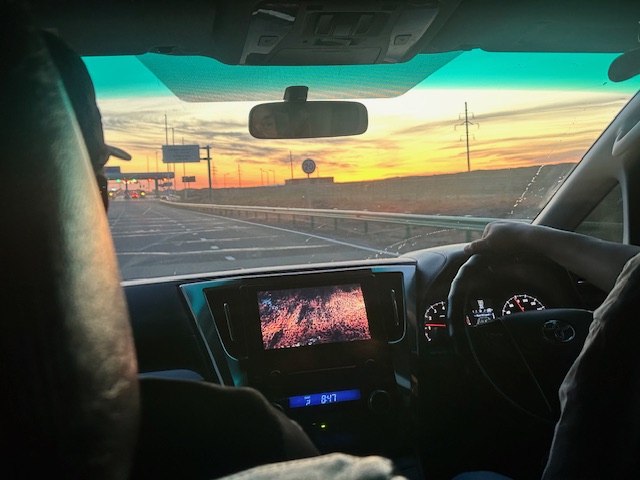 平原が続いているからか、夕焼け空はいつまでも続いていた。