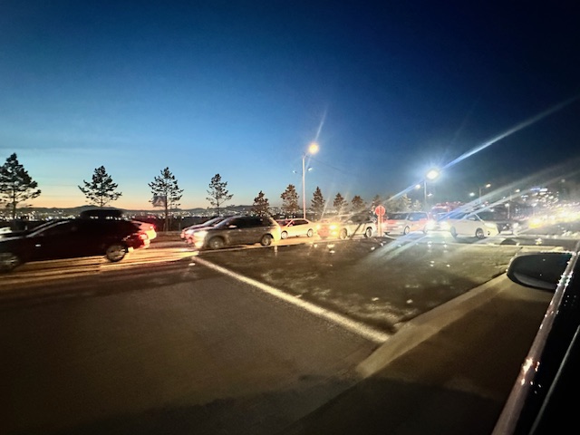 外へ出ると素晴らしい夕焼け空に感動。寒い。