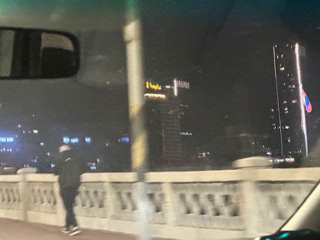まだまだ郊外で、坂を下ってから市街地に入るそうである。