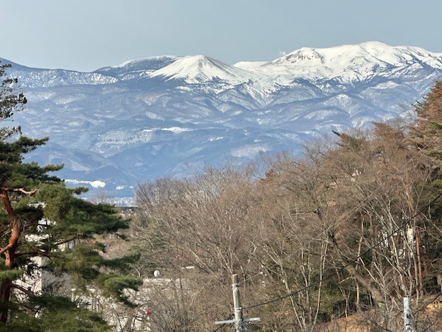 雪にすっぽりと覆われた吾妻小富士から西吾妻へと続く山々が美しい。