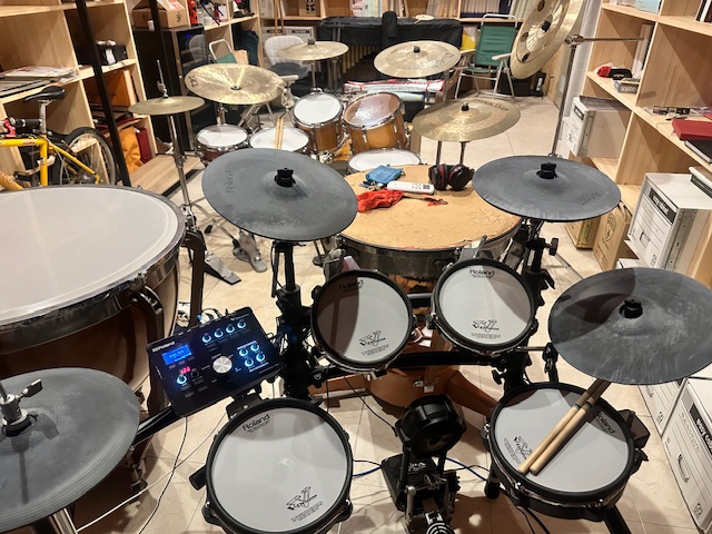 あとは個人練習の日々。全体練習の前にエレドラを使い、課題曲を聴きながら叩いて覚えていきます。