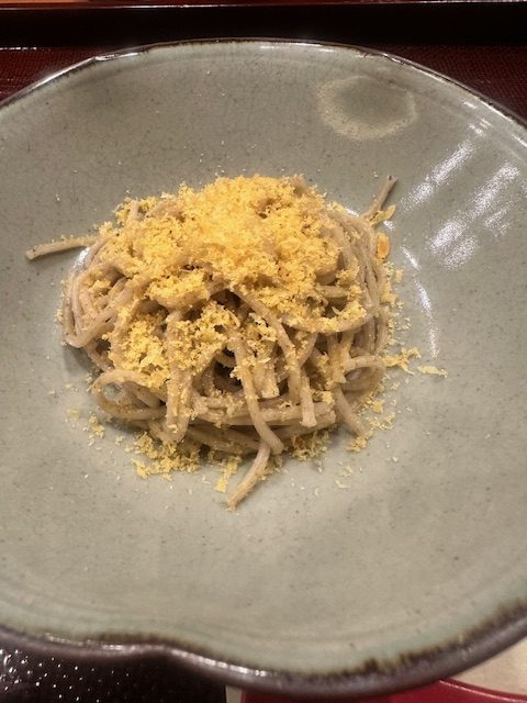 「蕎麦にカラスミをかけてみまいた!!」と、元気よく出てきた蕎麦。絶品でした。