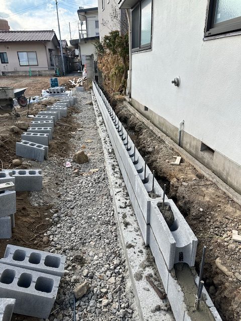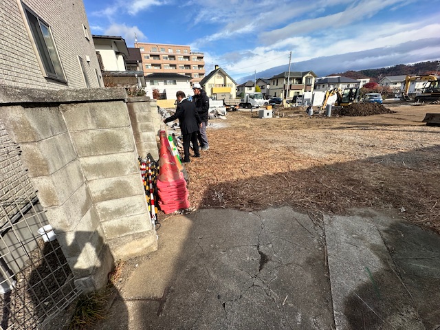 ちょっと隣地との境界にある塀をどのように仕上げるかの確認。