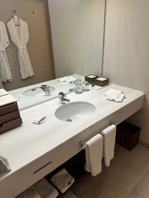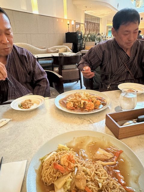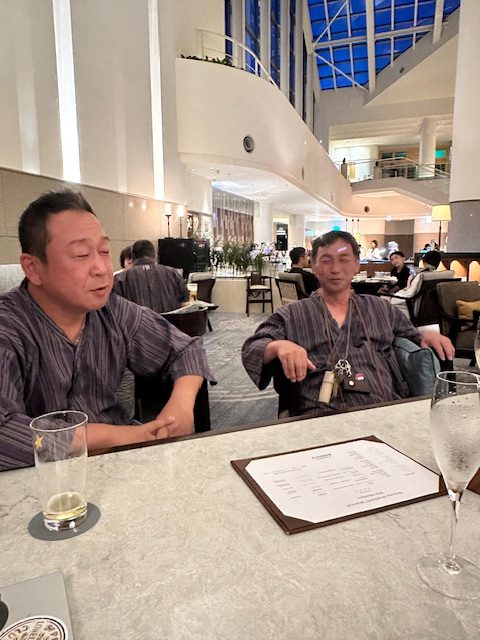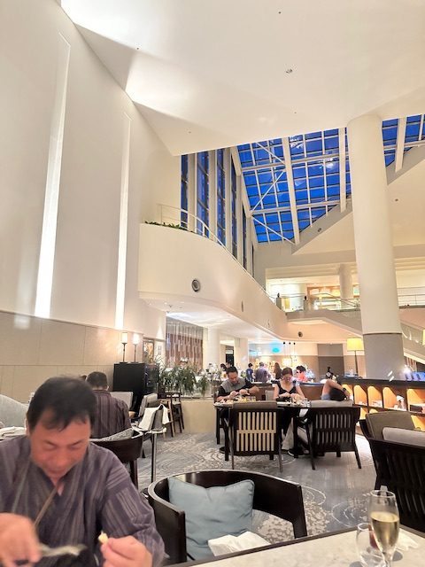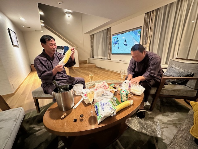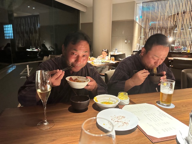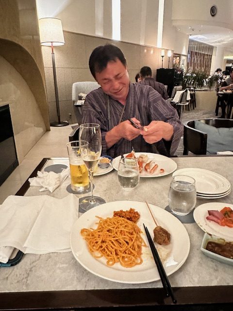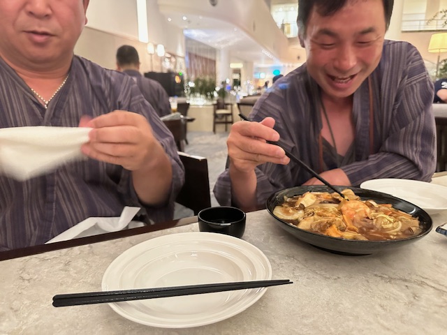 帰りが遅くなり買い物に行ったりする時間がなかったので、今夜はレストランのバイキングをお願いし、ラウンジで飲みながらゆっくり過ごした。カニ🦀嬉しそうですね。