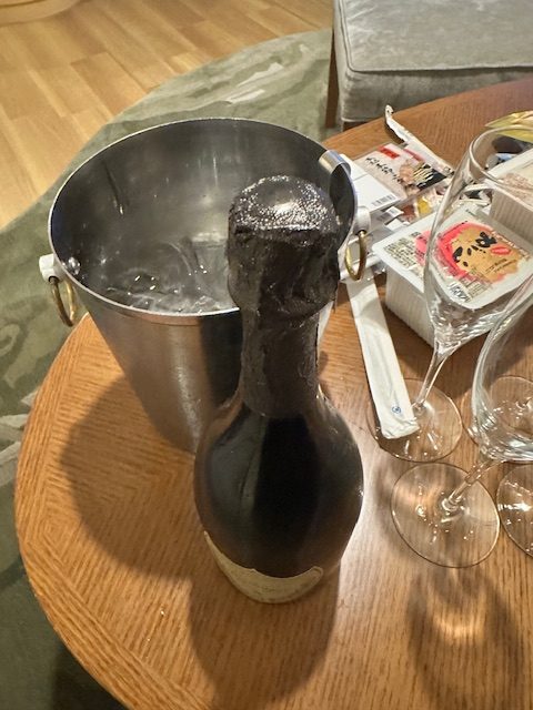 羊蹄山の美味しい豆腐とドンペリで二次会晩御飯。ドンペリはやっぱり酸っぱい。