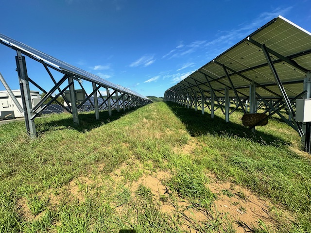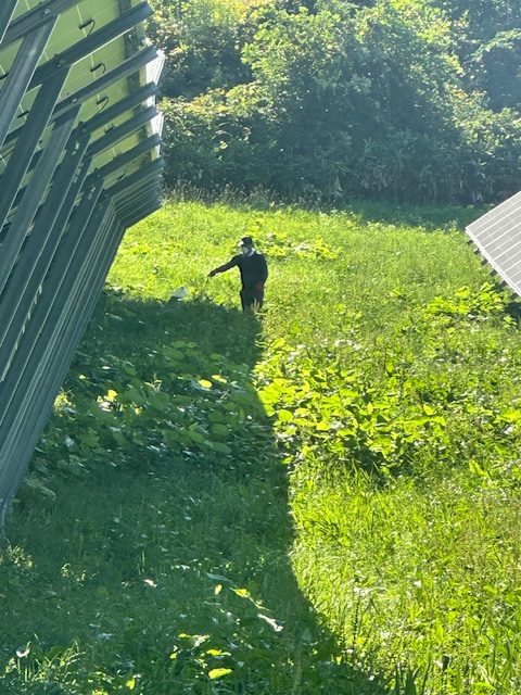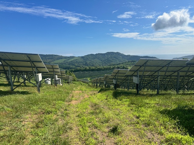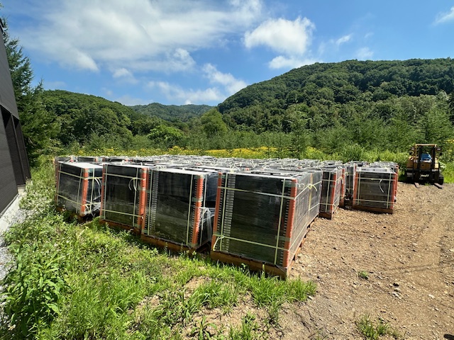 現場に戻ると業者さんが太陽光パネルを運搬していた。