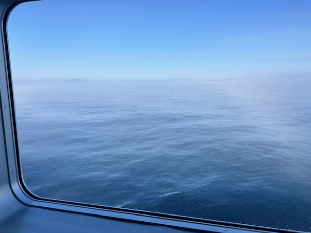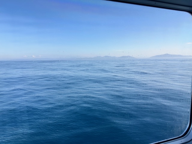 また高速で来た道を戻る。船は動かず同じ場所で停泊していた。
