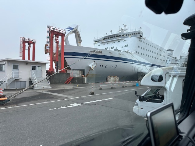 津波警報はまだ続いており、新日本海フェリーは沖合へ避難し停泊たままだった。