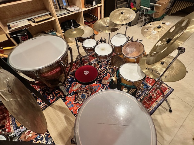 セッティング完了。30分かかった。今回はティンパニーとドラが必要な曲でこのようなマニアック(変態とも言われそう・・・)なセッティングとなってしまった。