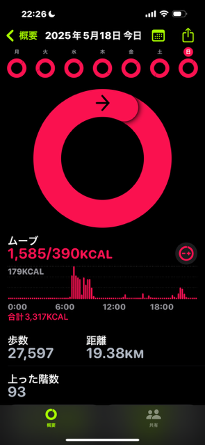 この頃は毎日のように25,000歩以上歩き、距離も20km近く歩っていた。上った階数が93階って、サンシャイン60を軽く超えていた。