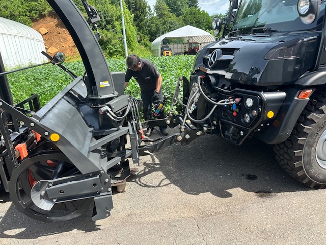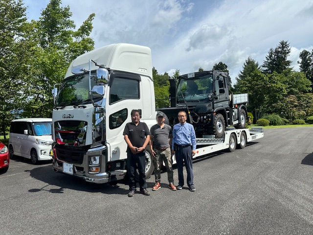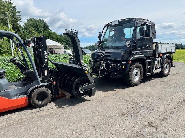 除雪機の整備が終わったので、2号車を積んできた。ここで2号車と除雪機を連結して、除雪機をくっつけた状態でまた福島へ戻るという任務。