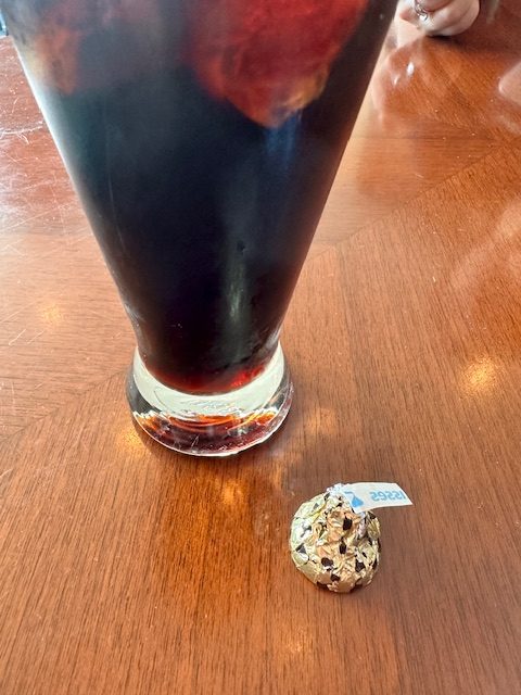 アイスコーヒーとカルティエのパンテールみたいなチョコを食べて帰りましょう。