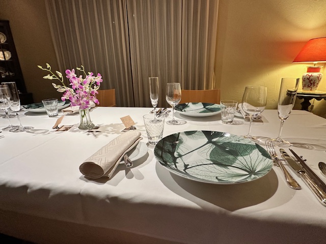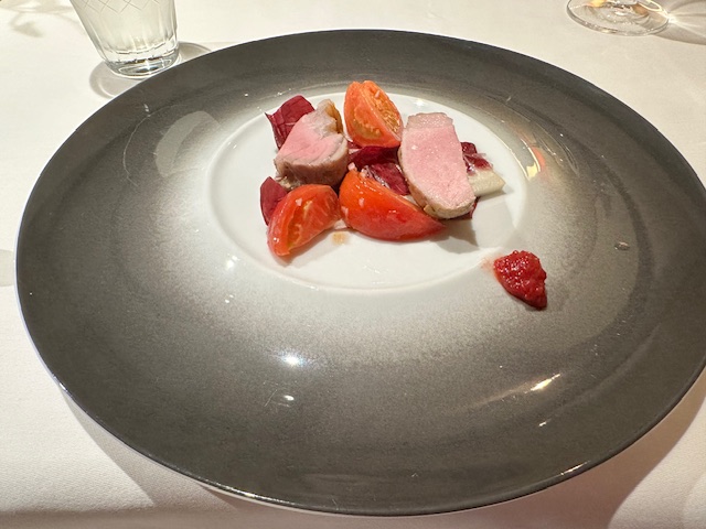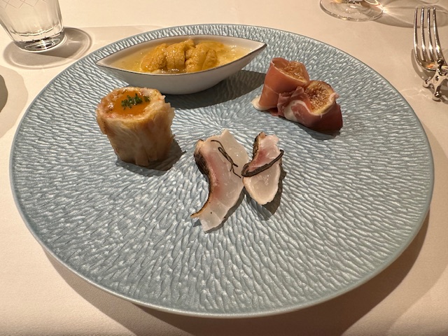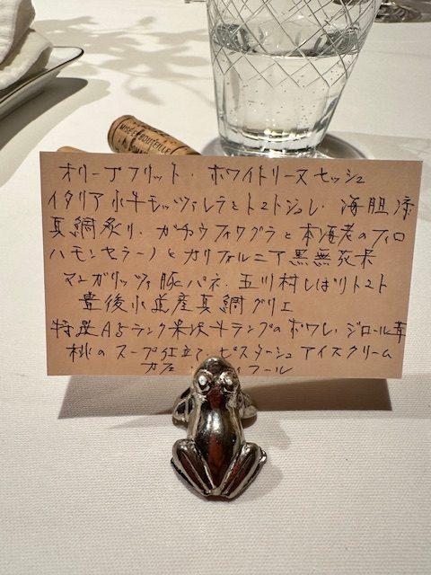 夏らしい食事。タイやウニなど繊細な味の食材が提供されました。フォアグラも美味い。