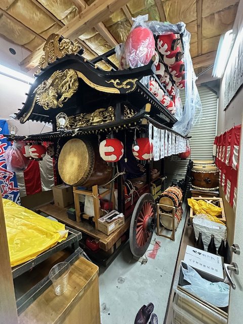 芋煮会の後は社務所で飲んだ。1ヶ月ぶりで山車と対面。また来年だね。