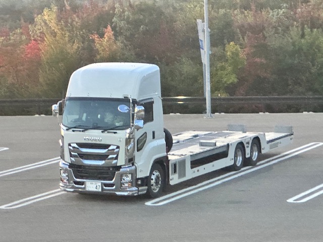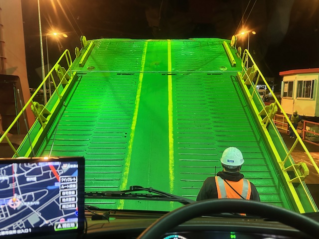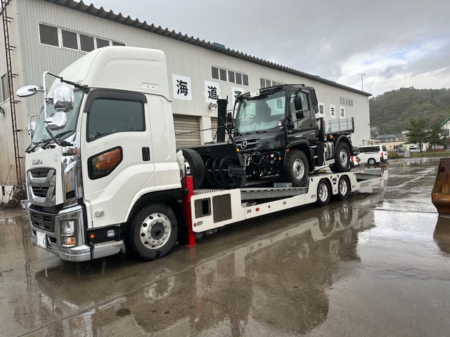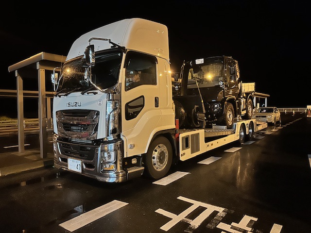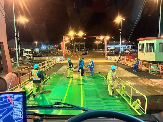 2024年は11月に入りすぐ除雪機を運んだら、小樽港で大雪に遭い、オールシーズンタイヤしか履いていない大型トラックでドキドキハラハラしながら運転した経験があり、今年は「10月中に運ぼう!!」という事になっていた。とにかく天気が不安定で、何が起こるかわからない。あの頃は北海道の方々も「タイヤ交換は12月になってから」と言っていたので、皆さんもノーマルのまま走っていたりと混乱し驚かれたようだった。