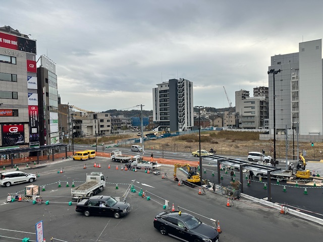 その後、初めての街、登戸で待ち合わせ。右側の空き地は再開発予定地で看板まで付いていたけれど、我が街の駅前再開発と一緒で建築費高騰の影響で着工出来ずにいるようだった。全国50箇所以上が同じ悩みで着工が遅れ遅れになっている。