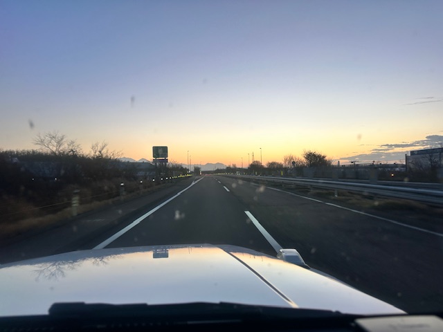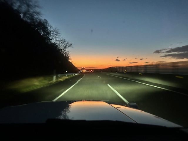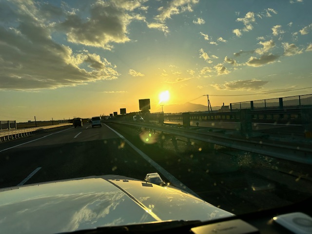 北陸道で太陽が沈み始めた。