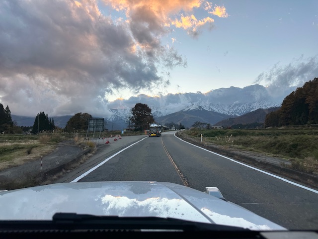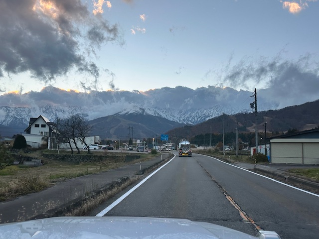 夕方、白馬の山々は真っ白になっていた。