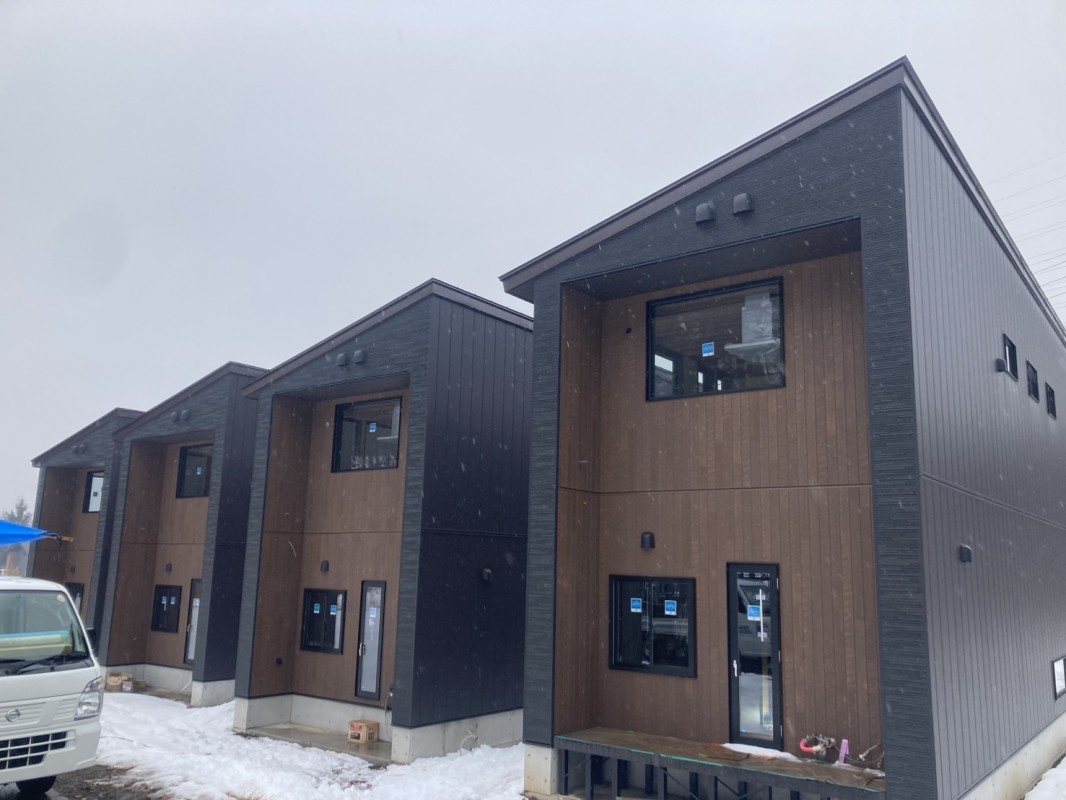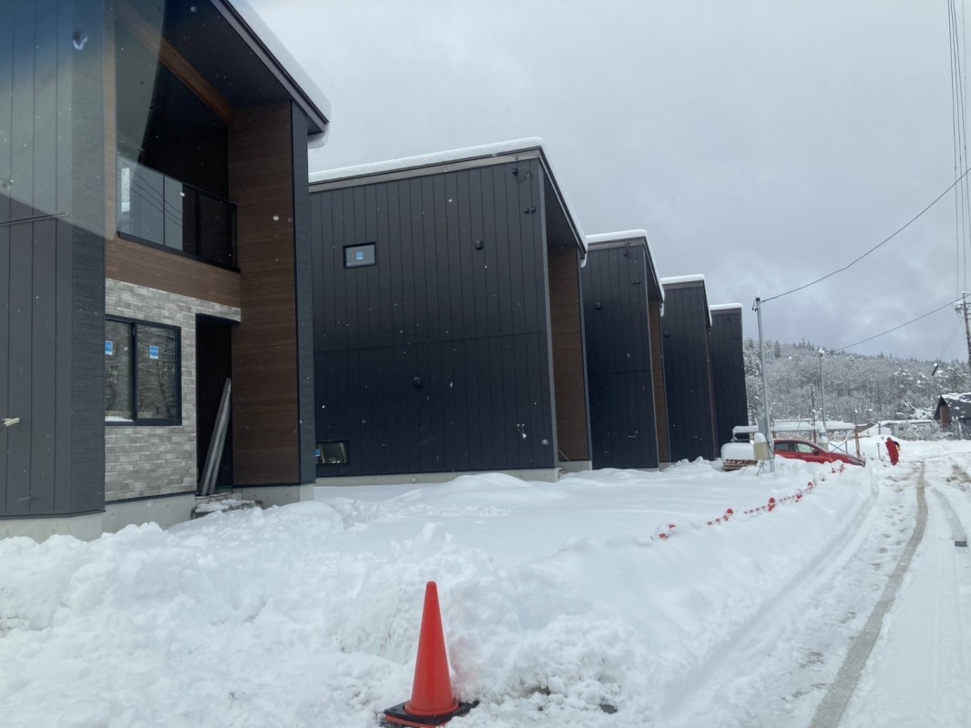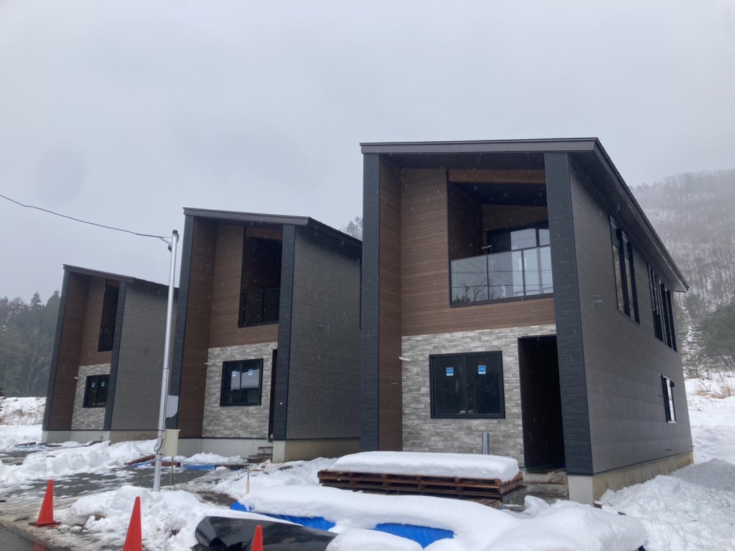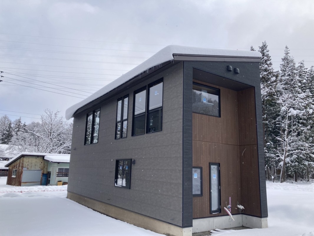白馬から写真が届いた。足場が全部取れて、現場には雪が降った。