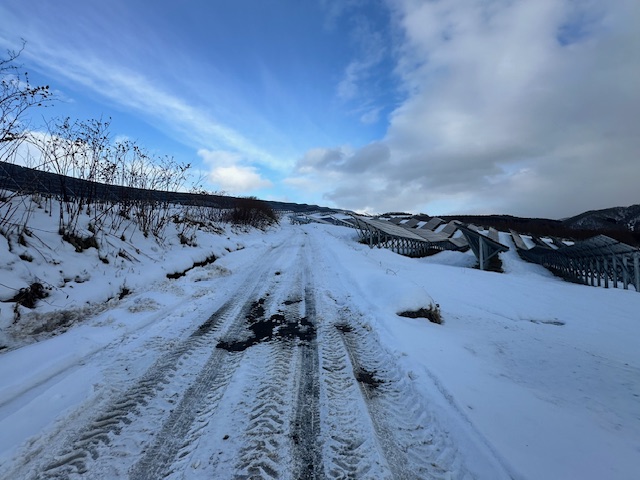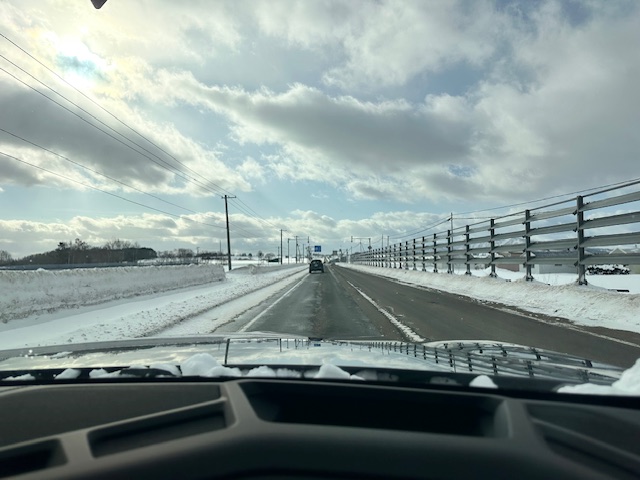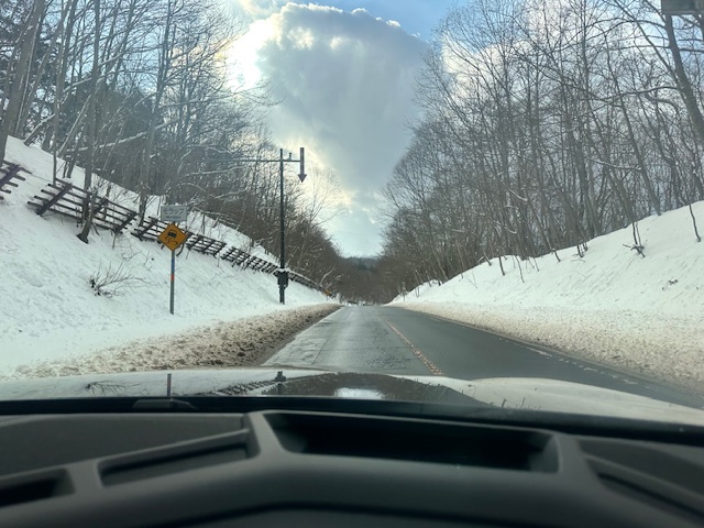 南西側のビューポイントを周り、現場を全て見たから帰りましょう。パネルに積雪もなく、特に問題もなかったので安心しました。特に冬に問題が発生する事が多いので自分でも見回ります。北海道の冬は過酷です。