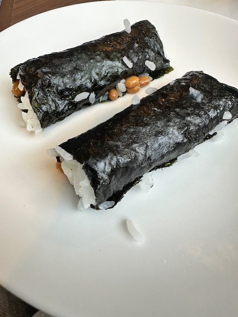どこかの女性が誰かと大きな声で話していて「あそこで作ってる納豆巻き、形はめっちゃダメだけど味は良かったよ!」