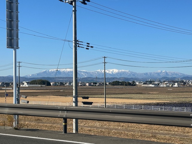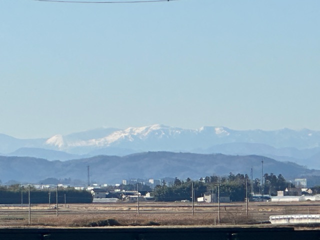 吾妻連峰でした。天元台や西吾妻まで見えていた。こちらから見えるとあの山からも太平洋が見えるはずだけど、見た事ないよなぁ〜