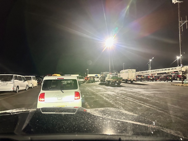 苫小牧東港到着。帰りは新潟まで帰ります。車は塩だらけになっていて、「ライトが暗いなぁ」と思ったら、塩が堆積して暗くなっていた。そのくらいこの辺りは塩化カリウムなのか塩化カルシウムなのかをジャンジャン撒いている。車壊れるから早く帰って洗いましょ〜