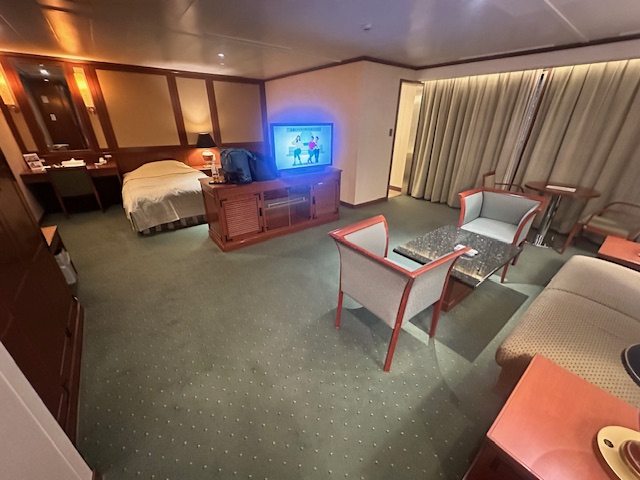 部屋到着。来る時と比べたらレトロ感すらあるけれど、DVDを観る事が出来るから⭕️マル
