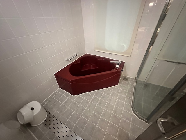申し訳なさそうに隅っこにある風呂桶はお湯がたっぷり入るので肩まで浸かれるのがいい。