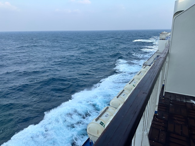 男鹿半島を周り秋田港へ向かっていた。反対の船室側が半島方面だったので陸は見えない。