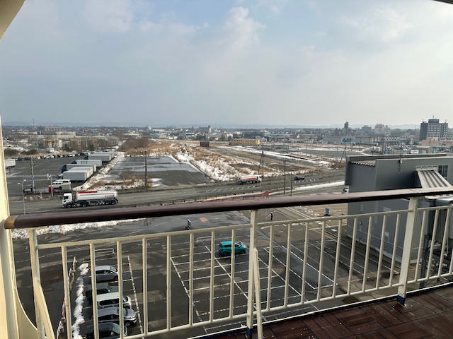 秋田港到着。本州の北の都市に雪はほとんどなかった。