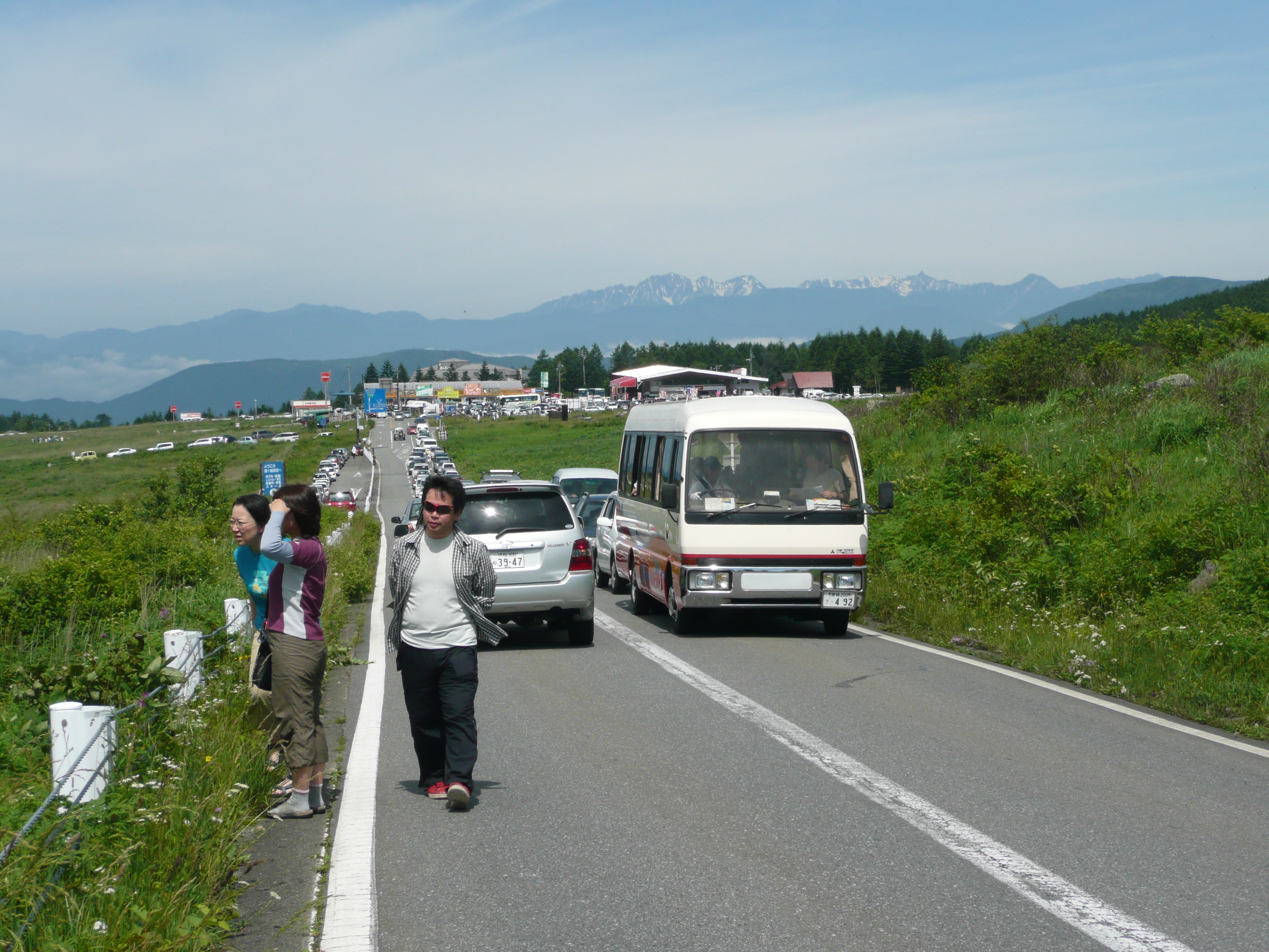 | 内容 | バスの中で飲み始め、宿で風呂に入り、また飲み始めた。「岳の湯温泉雲渓荘」という宿で、大きくは無いけれどこざっぱりとしていて、清潔な感じのイイ宿だった。 夜の宴会も楽しくて、勿論盛り上がってしまった。 翌日は、朝6時半出発で、美ヶ原高原と霧が峰へ。ものすごく天気がよく、1日違いで少し悔しかったけれど、でも八ヶ岳を始め、北岳、富士山、穂高連峰〜南岳、槍ヶ岳と、有名な山をぐるりと見渡す事が出来たので、これでいいのだと、満足していた。 ところが、ハプニングが起こり、霧が峰から白樺湖へ抜ける道が大渋滞をしていた。仕方がなく、全員バスを降りて歩いた。渋滞は2キロを超え、狭い駐車場へ入る車の順番待ちに、ここを通過する車が混ざってとんでもない事になっていた。 2キロだから30分でレストハウスと駐車場があるところまで歩いて着いてしまい、バスが到着するまでに2時間以上、足止めを食らった。 それにしても、素晴らしい場所だった。ニッコウキスゲが満開で、あんなにたくさん咲いているのは初めて見た。尾瀬なんか比べ物にならなかった。ゆっくり霧が峰と素晴らしい景色を見せるためのちょっとしたハプニングだったのかな? 霧が峰を後にして、毛利さんの娘さんの嫁ぎ先のおばあさんが開いている武石焼 雪しろ窯で、陶芸を教わり、ごはん茶碗を作ってきたのだけど、途中で先生から、「これは茶道で使うのですか?」と聞かれるくらい、無残にもかなりかけ離れた代物になっていた。やはり、図画工作いつでも「2」あれは、永遠の「2」を意味していたのだろう。 運転手のただのさんや、及川さんの難しそうな作品や、TONTONママや佐藤さん、毛利さん(姪)の作品に比べれば、見ることが出来ない。太陽の中の星である。 おいしい信州蕎麦をいただき、高速で帰ったのだけど、出発が大幅に遅れ、渋滞にはまり、福島到着は夜の10時半だった。仙台組はさらに1時間かかったということで、大変だったみたい。 もう、上越まで渋滞だったので手前のインターで下り、そのあたりから毛利・浩哉・須藤は飲んでいたから、遅くても全然ご機嫌だったけれど、他の方々は大変だったろうと思う。 それにしても、また良い仲間に恵まれ、素晴らしい旅が出来た事は忘れられない事実であり、一生の良い思い出となりました。 fin |