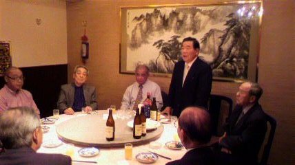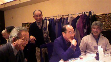 | 内容 | OB会へ行って参りました。先週、12月12日です。あれっ!?先々週ですね。早っ!! ホテルリッチフィールド地下の中華レストランで行われました。 今回は、約20名の参加。久しぶりで、農水省のOBの似内さんもお見えでした。 皆さん相変わらず若く、健康で良かった。 しかしながら、当時の数十億、数百億という仕事をまとめ、作ってきた男たちは、今でもとてもたくましいものだなと、感じておりました。 うれしかったのは、その中に、福島営業所長経験者が5人も居たことです。(軽部親分、金井元所長は居なかったけど、全員ご健在という事です。) 約2時間の会合の後、元上司の三浦OB会新会長、大橋元部長、いつもの毛利さん(「もうちゃん」なんて呼んでるけど、勿論元上司です)と、みさ子姉さんが合流して、紹興酒の夜からワインの夕べに突入。 飲んだなー。終了後、とりあえずタクシーに大橋部長以外4人で乗ったのだけど、三浦会長が「おい毛利、お前もたまには家へ来て泊っていけ!!」という事になり、山小屋とか、山の前後泊以外では珍しく、毛利さんと客間へお泊りとなったのです。 何だか、光のページェントがタクシーからとてもきれいに見えたのが印象的だったけど、どうやって布団に入ったのか、いまいち定かではありませんでした。(本当に謎) それにしても、三浦邸、癒しの空間です。いつ行っても、いつ泊まっても癒される。景色も環境も素晴らしいのです。 つづく 写真は、数百億の物件を仕上げてきた侍達です。 |