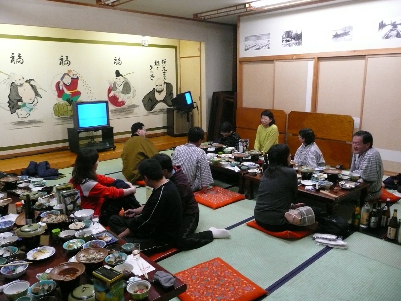 | 内容 | 何だか、今日は落ち着いていた。寒さのせいか、昨夜も飲んでいたからか・・・ いつもは宿に着くか付かないかくらいでビールを握りしめているのに、誰も手にしない。おかしい・・・ みんなでそろって風呂に入り、片付けや着替えをしている。おかしい。いつもと様子が違うのである。 それでも、「では、そろそろ」という事になり、ビールが次々に空いて行った。やっと、いつもの調子を取り戻した。次第に声が大きくなり、馬鹿話や昔話に花が咲き始めた。窓の外の桜も、いつの間にか咲き始めた。 この山の会のメンバーは、雲を吹き飛ばし、大雪を止ませ、太陽を呼びもどし、大風を吹かせ、それでも足りずに花まで咲かせるというのだろうか(謎) みんな風呂から上がり、いよいよ宴会がスタートした。 まずは、酔わないうちに「第1回バリのお土産争奪あみだくじ大会」を勝手に始めてみた。 あまり大したものは無かったけれど、みんな喜んでもらえたようだった。ガルーダインドネシア航空のビジネスクラス客用のポーチに入った飛行機セットが思いのほか好評だった。まあ、香水まで入っているからね。 自己紹介が始まり、みっちゃんがいつもの詩吟を初め、今回は2つ詠ってくれた。山で自己紹介を聞くと、個性の豊かさが良く分かる。 夕日は残念ながら見えなかったけれど、夕焼けはきれいだった。 いつも通り盛り上がり、外に出てみたら、ものすごくきれいな星空が広がっていた。 今回はさすがにアルコールが多すぎたのか、半分以上を残して終了。 いつもは飲みつくすのに、どうしたというのだろうか?ちょっぴり拍子抜けしてしまった。 それでも、とても素敵な夜でした。 |