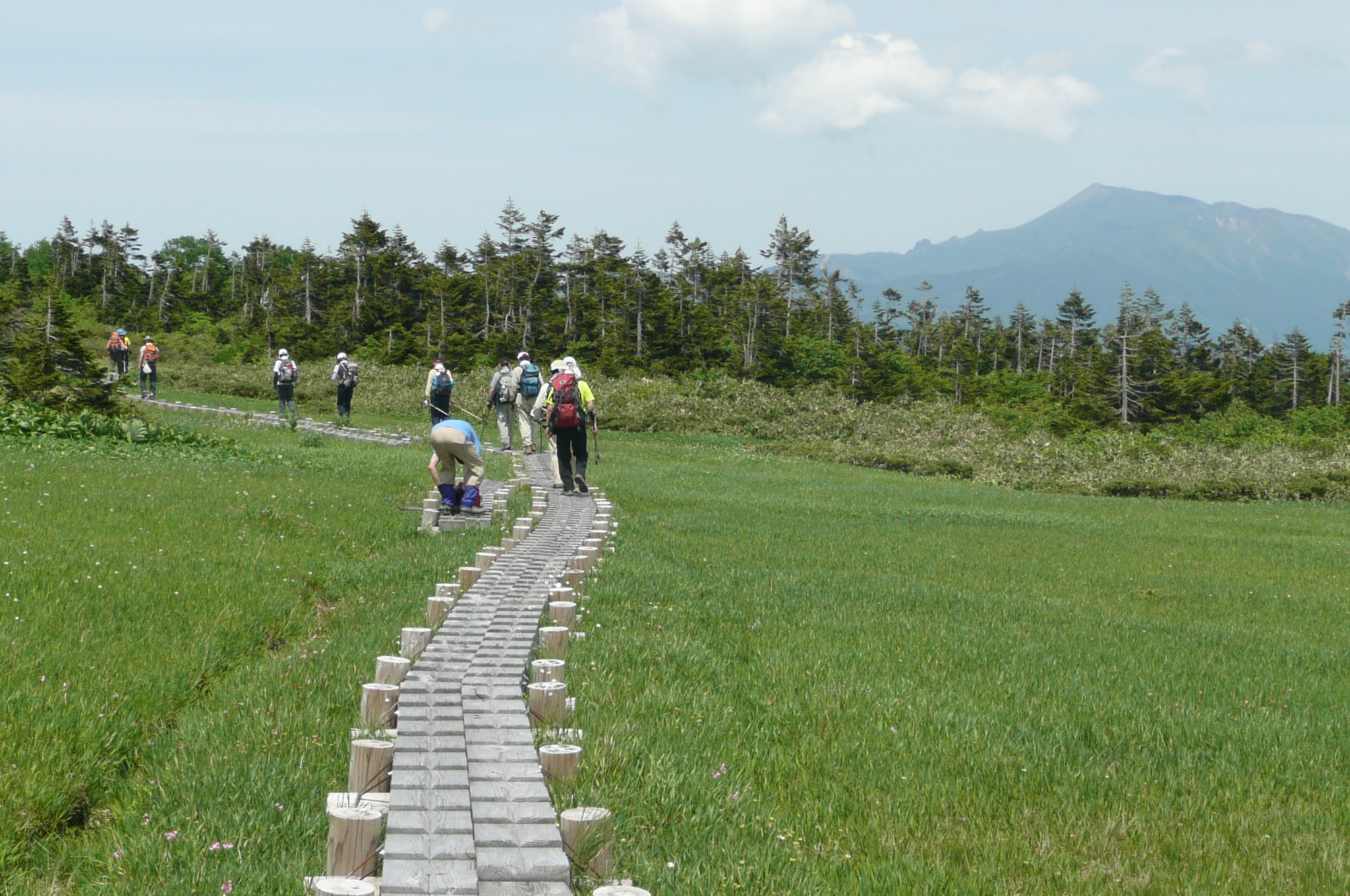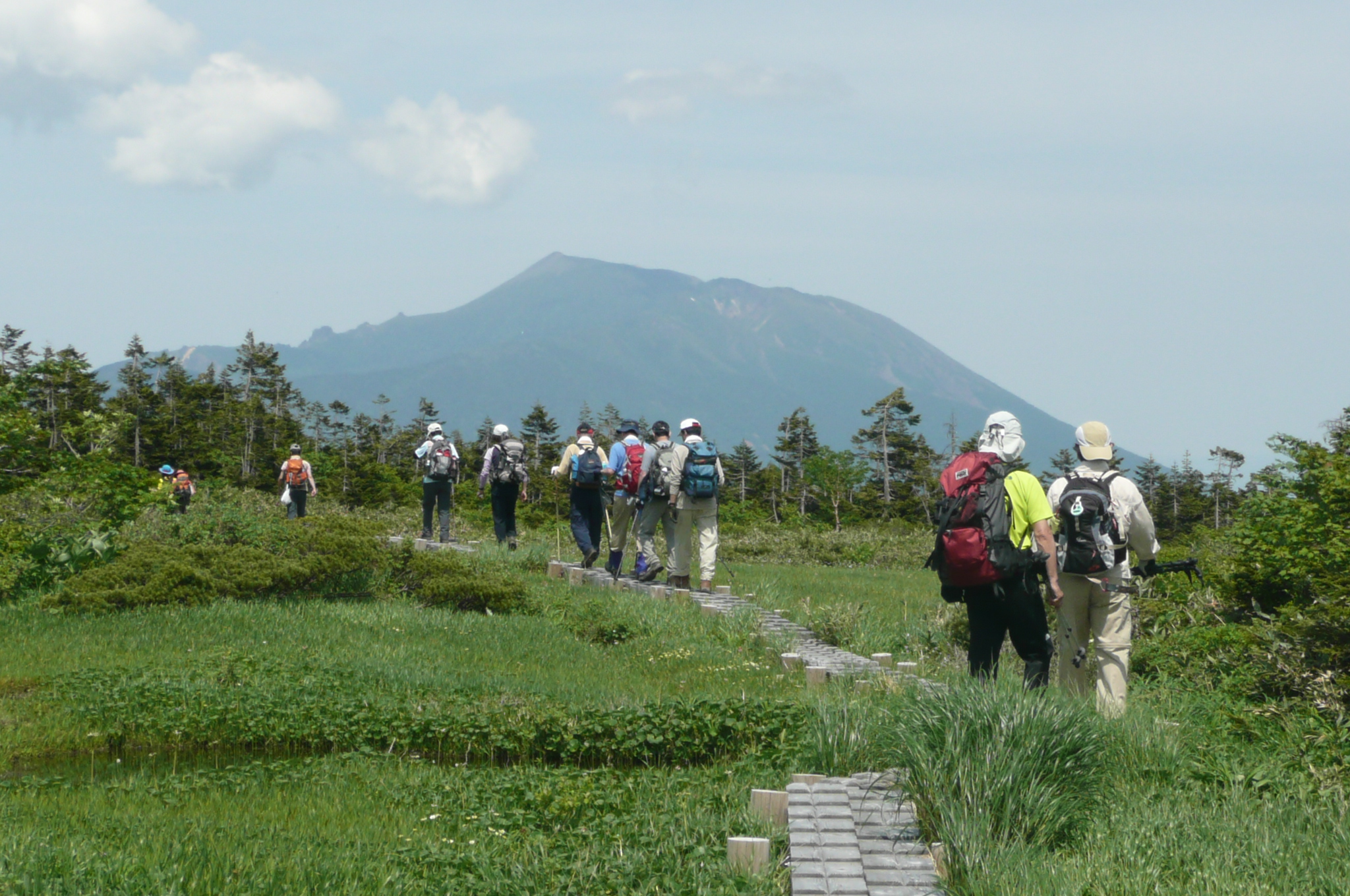 | 内容 | 6月26日土曜日は、岩手県雫石にある、烏帽子岳の手前、千沼ヶ原(「せんしょうがはら」と読みます。)へ行ってきました。 仙台に朝6時集合。東北道を北上し、雫石町へ。気温が32度まで上がるという予報で内心、「気温の高い日は高い山に限る」と、思いながら向かったのですが、標高は1300mくらいの場所なので悪い予感は的中でした。 まず、あまり風の吹かない樹林帯を進み、まるでサウナの中を登山しているような状態になりました。久しぶりで、自分が塩を吹いていることに気づき、かなり塩分が抜けてしまったものだから、次第にバテてきました。 岩手山が後ろに見え始め、やっと稜線に出たのに、全然涼しくは無く、風があまり吹かないものだから、太陽にジリジリと焼かれ、左側が切り立った尾根を歩き、しばらくすると緑の草原に数々の池塘が見えてきました。 暫く振りで見た風景のような気がしていたのだけれど、吾妻連峰の西吾妻〜東大巓の弥兵衛平あたりの風景とそっくりでした。 あちらは標高1900m。北へ北上し、千沼ヶ原が標高1300mくらい。緯度の差があるので、1年を通して同じような環境なのでしょうか。よくまあ、似たような景色ができるものです。 昼食をとり、写真を撮り、下山を始めたのですが、長い長い。すぐに景色が悪くなるので、下ばかり向いて歩いていたような気がします。 今回、山では初めてだったのですが、足がつりました。左足の外側から始まり、右足の外側、両足のフトモモの内側へと移っていき、浩哉さんから芍薬甘草湯をもらい、飲んだら30分くらいで治りましたけれど、年なのか、運動不足なのか、暑さのせいなのか・・・自分の中では「暑さのせい。塩分が一気に抜けたせい」ということにしてあります。 しかし、恐るべし「芍薬甘草湯」。1包10円くらいと言っていましたので、私も常備したいと思います。 しかし、戻ってから、足が筋肉痛のまま3日ほど治りませんでした。 縦走で3日、4日歩き続ければそれなりに歩けるのだろうけど、一度休むとダメですね。 景色だけは本当に素晴らしい山でした。 しかし今、心は次なる山、日本3大難所の一つ、「谷川岳」へ向かっています。 ※写真の一番最後にあるのは「ツタウルシ」です。 よく、ブナの木にツタをはっています。 見かけるたびに浩哉さんから教えられているので、私は覚えてしまいましたが、触ると大変な事になるそうです。 どこの山にもありますので、ブナの木にツタを這う草を見つけたら、写真を参考に気をつけてください。 |