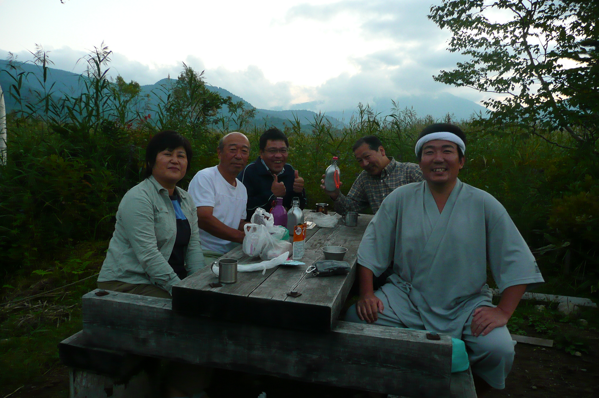 | 内容 | 2010.9.18 朝起きると雲はあるけれど太陽が出てきて、良い天気だった。 気温は低かった。先週までの暑さが嘘のようでした。 仲間を4人迎えに行き、6:20には西インターから出発。 今年は、日光宇都宮道路から金精峠を超えて片品村へ。 およそ、3時間ちょっとで戸倉温泉に到着。鳩待峠行のワゴンタクシーに乗り換える。片道900円。 鳩待峠は意外にも空いていた。混雑しない尾瀬は静かでいいものです。 山の鼻へ向けて坂道を20分ほど下りるとほとんど平らになり、あっという間に今回のポイントである「山の鼻小屋」へ到着。 何がポイントか?というと、昨年テレビで山の鼻小屋を放送していた時、豚丼が紹介されており、美味しそうだったので注文したのだけれど、ちょっと物足りなく、隣で鎌田さんが食べるカツ丼がやけに美味しそうに見えたので、1年間、次はカツ丼と決めていたのである。 予想通りのおいしさで、小さく見える器が、実は上げ底無しなものだから、ボリュームも素晴らしく、生ビール600円も食前に飲んでいたものだから、大満足でした。 今年は山の鼻から竜宮→見晴と、真っ直ぐ向かうお気楽コースなので、途中でワインを飲みながら歩きました。 2時半前には弥四郎小屋に着いてしまい、3時には一番風呂に入り、すぐに宴会になってしまった。 相変わらず気持ちの良い仲間達で、酒がどんどん進み、いつもの佐藤さん特製「チーズの燻製」や、昨日の朝わざわざ釣ってきてくれた「ヤマメの燻製」、「しめサバ」、「甘エビの刺身」なども並んだ。 柴田さんのお手製いつもの「青唐辛子味噌」もたまらなくおいしかった。 今年初参加の石川さんは、20年ぶりの尾瀬に上機嫌で、次々と杯を空けていった。(勿論他の全員もですが・・・^^) 夜は月が出て、雲間に星が見えて、穏やかで素晴らしい時間だった。 翌日も天気は晴れ。 東電小屋を経由し、ヨッピ吊り橋を渡り山の鼻へ戻るコース。 行きは燧ケ岳を見ながら歩き、帰りは至仏山を見ながら。 素晴らしい2日間でした。 気になったのは、新調した靴で歩いたのだけれど、左足の小指の底に水ぶくれが出来てしまい、靴が合わないのか、小さかったのか・・・ まあ、私の激しい歩きで、足の形に馴染む事を願うばかりであります。 |