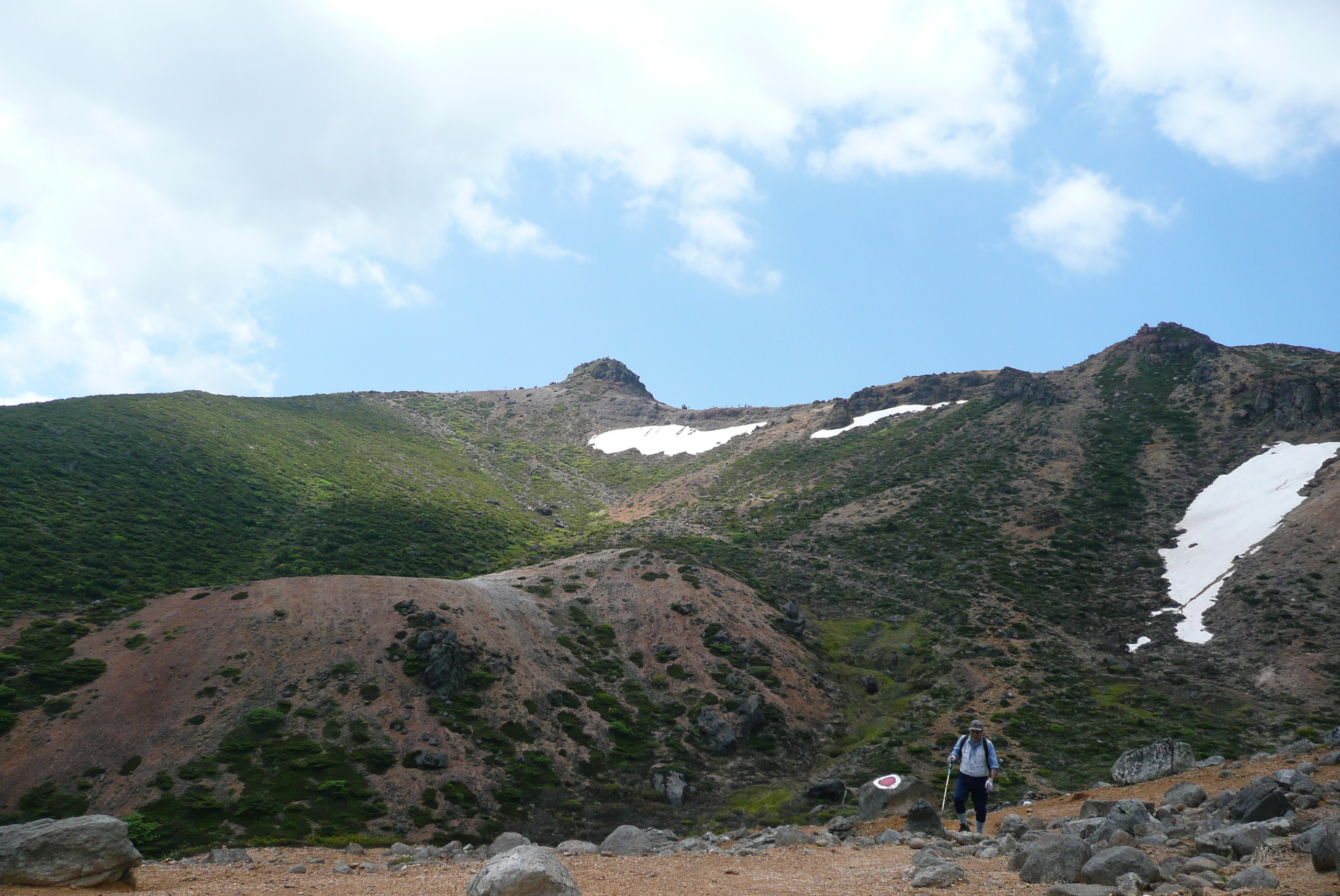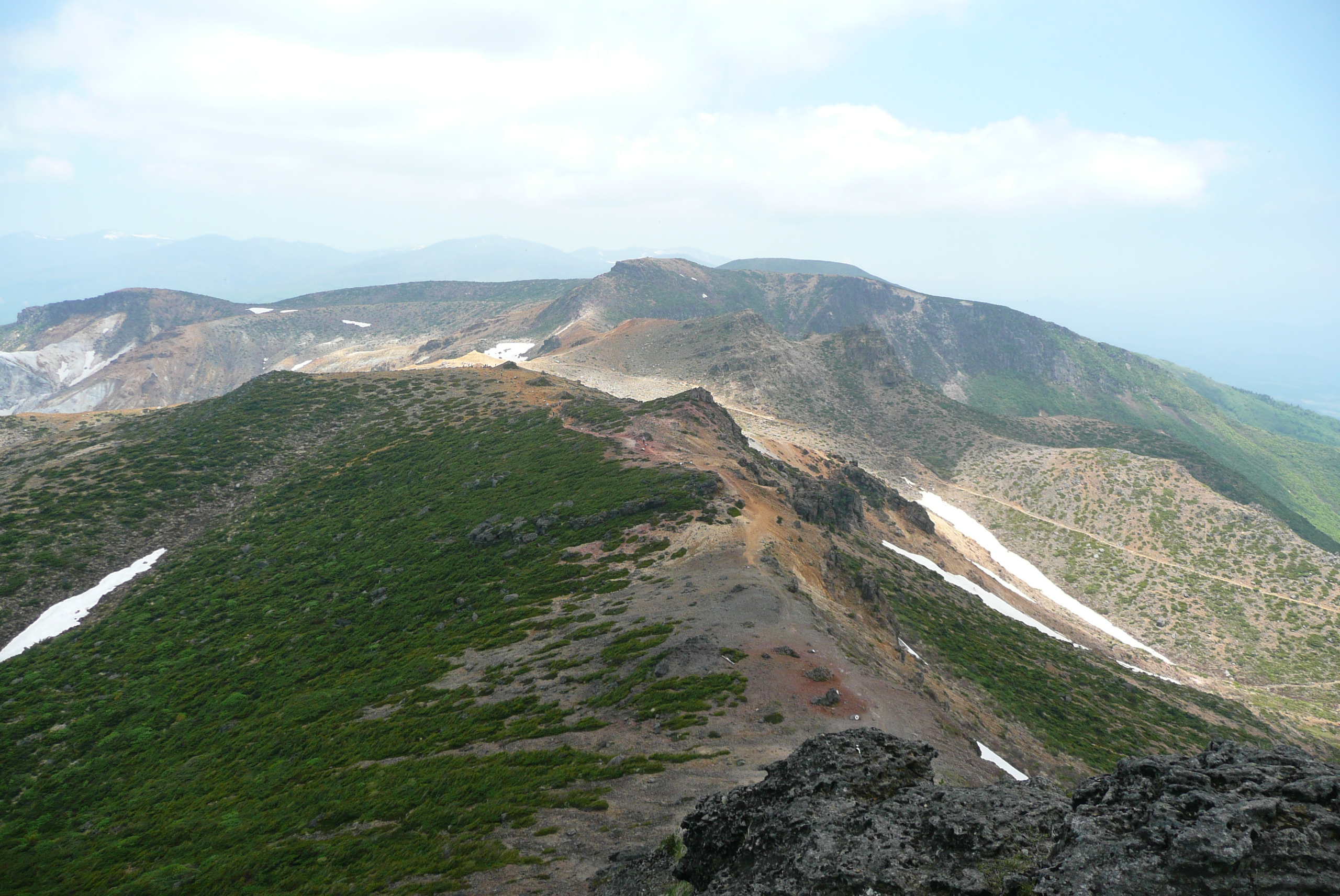 | 内容 | こんにちは。今年の梅雨は何だか雨があまり降らないせいか、まるで涼しい初夏の日が続いているようですね。うれしいような、農作物を考えると心配なような・・・ さて、6月の中旬に安達太良山へ久しぶりで一人行ってまいりました。朝起きると、山が「丸見え」なので、「今日しかない!」と、向かったのです。 お昼のカップラーメンを買い、車でスキー場の駐車場へ。約40分で到着。 週末に那須から三本槍岳をめぐり、三斗小屋温泉泊の予定があり、アルコール係の私は多分、25キロくらいの荷物になるだろうと想定していたので、トレーニングがてらの山行でした。 とても朝から暑かったので、今回は背負子にリュック、MSRのガスボンベなどと、ドナルドトランプの本などを積んで出発でした。 くろがね小屋経由の頂上だったので、金命水まではほとんどノンストップで登り、(金命水おいしかった!)小屋で少し休憩をして頂上を目指しました。 団体さんが多く、頂上には何故か小さな虫がたくさん居たので、「パンパン」とお参りだけして早々と稜線に下りてしまいました。 母成側の分岐点で美味しいラーメンを食べながら、景色を見て、本を読んで、ゆっくりしてから下山開始。「帰りに風呂入っていきな!」という、くろがね小屋の兄貴の誘いのまま、真っ白なお湯につかり、さっぱりしてからさらに下山をしました。 くろがね小屋は、私の山の先生伊東設計の伊東雄一郎先生が設計した建物なのですが、安達太良の景色に合う、とても素敵なデザインの山小屋なのです。 登り始めてから下山まで、合計6時間の小さな旅でした。 |