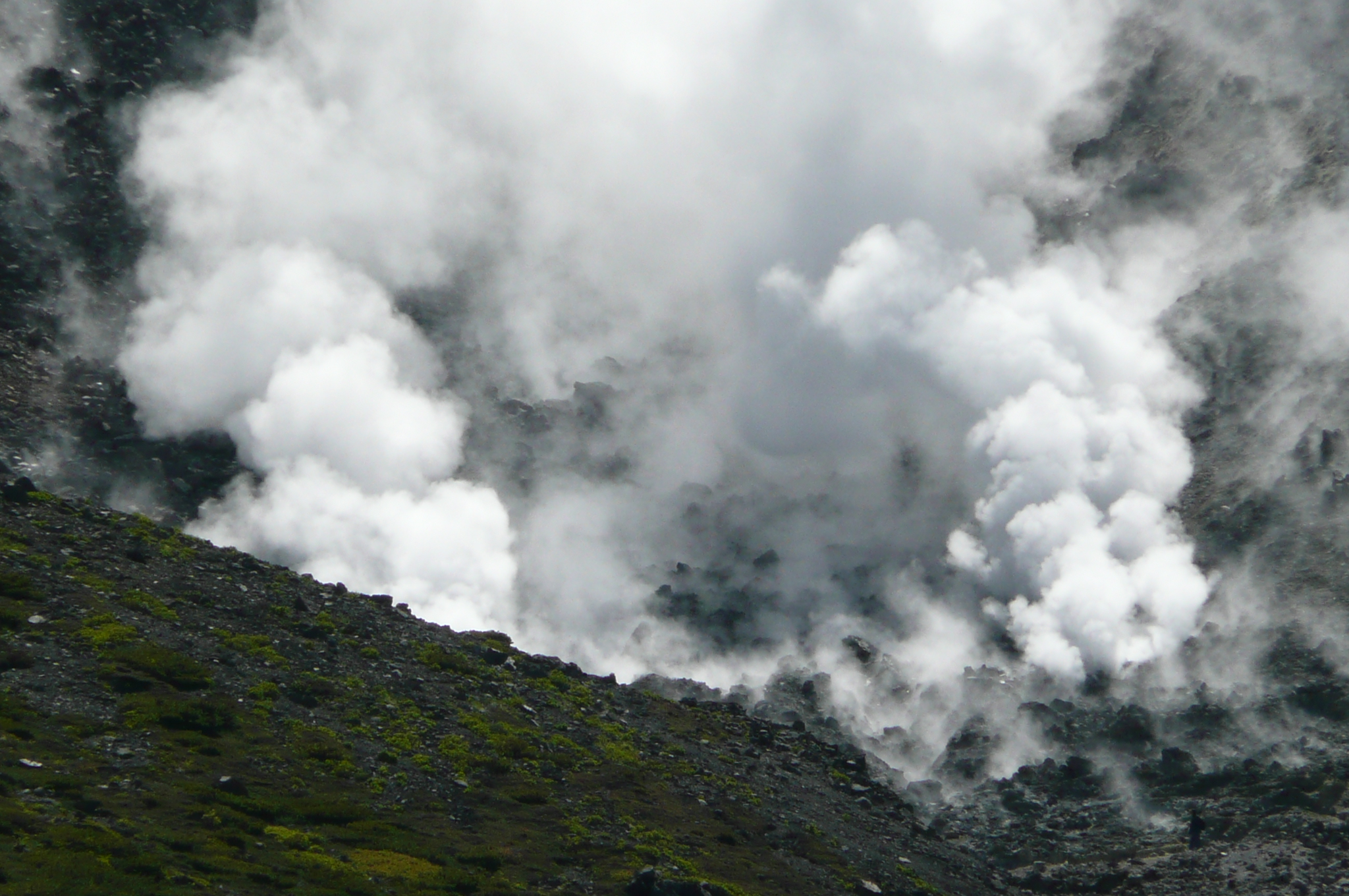 | 内容 | 小屋に到着し、温泉に入り、ホッとしたところでいつもの飲み会が始まり、昼も飲んでいたけれど、夜もうまいのであります。 たばこ屋は、晩ご飯の合図が大太鼓を叩く音で、5時前には太鼓で呼ばれ、ピカピカ明るい中での夕食を頂いたのです。(なかなか美味しかった!) 翌朝、4時過ぎくらいにみんなが行動し始まったので、つられて起きてみると、2日目はものすごくいい天気だった。 南に回り、沢を越え、茶臼岳西側の直登ルートを登る。相変わらず、茶臼岳の噴煙がものすごい。 稜線に出て、茶臼南側のルートを取り、ロープウエイの山頂駅へ。ここに荷物を置いて、茶臼頂上を目指した。 以前は、和以内が体調を崩し、佐藤浩哉さんが荷物を背負い、私は峰の茶屋跡避難小屋からロープウエイ乗り場まで駆け下りたので、頂上を目指すのは初めてだった。(そういえばあの時、ロープウエイ乗り場に車を回して待っていたら、みんなに驚かれたっけ。ロープウエイより早く下りられるわけがナイと。) 茶臼の上りは結構急で、二日酔いは治まったけれど、意外ときつかった。頂上に着くと、燧ケ岳、至仏山、会津駒ケ岳、日光白根山などが遠くに見え、以前はあちら側からこちらを見ていたのだなと考えながら、しばらく眺めているのでした。 頂上のお釜を1周して、ロープウエイに乗り、駐車場まで無事に下山。 その頃から、栗原市を中心とした地震の情報が次第に入ってきて、小林さんの知人の旅館が土石流で流されていたり、橋が落ちた情報、栗駒の頂上へはどうやらしばらく行けそうに無いような事が次第に分かってきたのでした。 地震雲、本当かもしれません。(写真1番目は、福島市上空に地震の前日の昼過ぎくらいから地震発生時まで同じ場所に停滞していた雲。地震雲が本当にあるとすれば、それかと思われる。) |