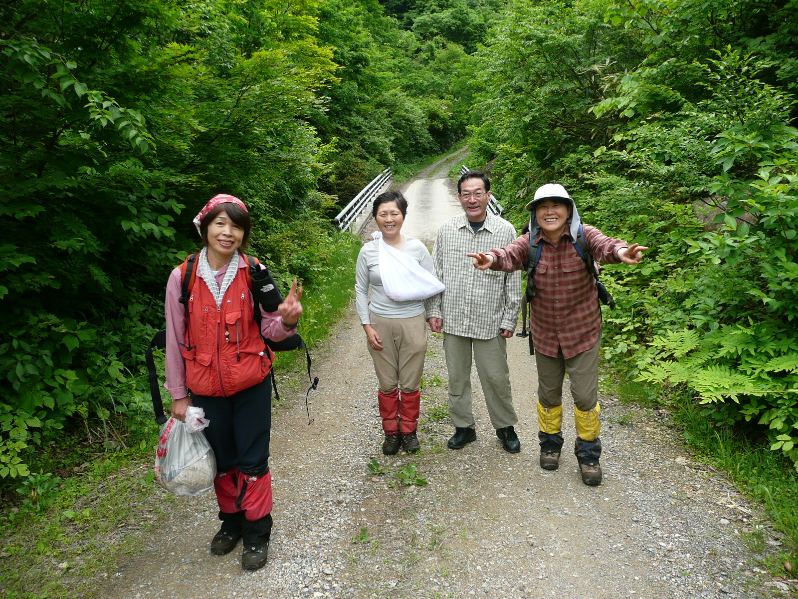 | 内容 | わーーーーーーっ!! って声が聞こえたら、阿部さんが宙を舞っていた!!どうも、1回転しながら背中から落ちていったように見えた!! みんな大騒ぎになった。松崎さんが先頭切ってすごいスピードでがけ下に下りていった。浩哉さんもハヤカッタ。 須藤、少し考えていた。救助の方法、自分はどこから降りようか、鈍いというか、冷静というか・・・ 「須藤来い!!」と言われて、我に返りがけ下に向かって下りだしたら、ツルリン!! 自分まで転んじゃった!!川石だから、コケがすごい。そういえば、行くときに松崎さんと崖を直接下りてショートカットした場所ではないか!? いでーー!!右腕を強打したけれど、そのまま滑りながら勢いついて谷底に下りていけた。阿部さんに駆け寄ると、少し混乱しているけれど、意識はある。目も開いてる。顔は青白い。まあ、これは転落のショックだろう。 目の前に行き、話しかける。「どう?」「うーん、大丈夫かな?」足も手も動いた。まず、時計と手袋、指輪を外した。左手が少し腫れていたのだ。それから、正面で両手を取り、引きながら起こしてみた。立てた。足も大丈夫。心配なのは、左手首。右ひじ。血が出ていた。あーーー、そういえば忘れていた、自分の右手。これは血が出ているけど、問題なし。俺だから。 まずは阿部さんを崖の上まで連れて行く事だった。自分と浩哉さんが下から足を押さえ、上から松崎さん達がストックを捕まらせて引っ張る。何とか上がれた。すかさず添え木を2本拾い、当てて包帯を巻いていった。三角巾もあちらからこちらから出てきた。みんな、よくそんなの持ってるなと、感心してしまった。それに、早い。手際がいい。このメンバーなら、何があっても安心だなと感じた。 具合は大丈夫そうだけど、左手が心配なので、すぐに始まる鎖場急登の方法を考えた。ザイルはある。自分と松崎さんが持っていた。 とりあえず、阿部さんの体にザイルを巻き、上から松崎さんが引っ張る。須藤は阿部さんの隣で援護。滑落したら、自分が下にならなくては・・・などと、考えていた。下からは浩哉さん、毛利さん、他のみんなが押し上げた。きっと、みんな同じ気持ちだろう。体を張っていた。 何とかして鎖場を越えた。安心した。阿部さんのリュックが無いと思ったら、小林さんが既に先まで運んでいてくれた。ハヤっ!! 左手に三角巾をしているので、私の背負子に右手を捕まらせ、ゆっくりと歩く。石やぬかるみが少しあるので、転倒しないようにと、1歩ずつゆっくり歩いた。 何度も大丈夫・痛くない?と聞き返したけれど、「大丈夫」と元気な声が返ってくるので、安心した。 無事、登山口へ戻り、役場の人が車に乗せてくれて、山開き本部へ連れて行ってくれた。ものすごい安心感。 一昨年の事故は大変だったんだろうな。 バスへ行き、着替えていたら阿部さんと蒲原さんと小林さんが戻ってきた。「打撲みたいー」って、良かったね。 後日談 阿部さんは結局、左手首にひびがはいっており、全治3週間だった。ふつう、ひびがはいったら冷や汗出るくらい痛いのに、帰りのバスでは自分と浩哉さんが残りのワイン他を飲みながら馬鹿言って笑わせていたけれど、本当は痛かったんだろうな。申し訳ない。 写真を見ていたら、阿部さんが転落し始めた写真を撮っていた。そういえば、カメラ越しに阿部さんの転落を見ていたような気がする。 3〜4m落ちたのに、たいしたケガでなく良かった。リュックに助けられたのか、阿部さんのしなやかな体のお陰か、運がよかったのか・・・とにかく、無事で本当に良かった。 それにしても、みんな知識と勇気があふれた行動、心強かった。仲間って素晴らしいですね。本当の連携プレイを見た。 Fin |